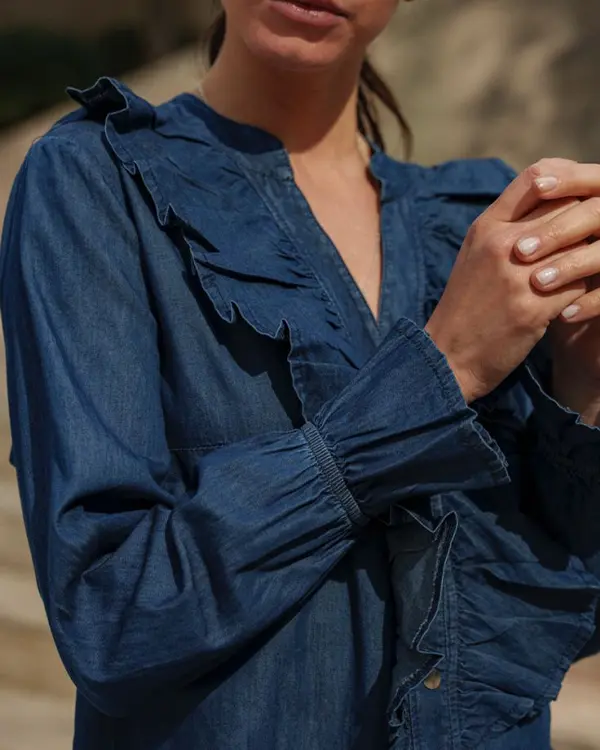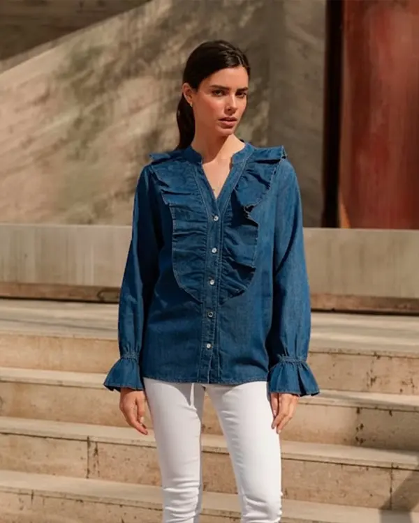 Camisa Denim Liviano Vuelos Color Azul Marca Caloé